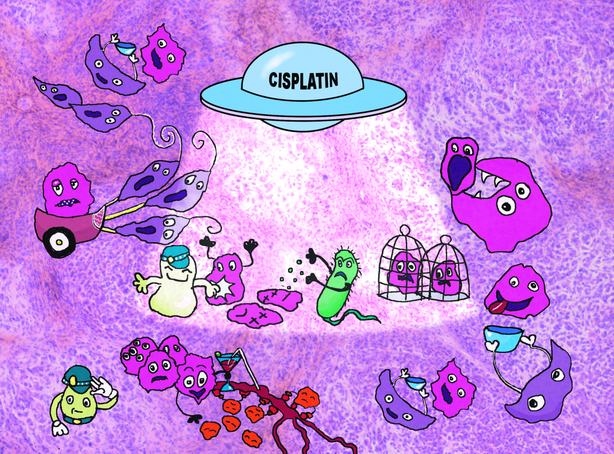 V tomto review, jehož hlavní autorkou je dr. Martina Raudenská je věnována pozornost alternativním a tedy ne zcela očekávaným účinkům cisplatiny, které ale mohou podpořit adekvátní terapeutickou odpověď. Nejprve jsou popsány účinky cisplatiny na buněčné úrovni, jako jsou změny v intracelulárním pH a buněčných mechanických vlastnostech. Jsou rovněž diskutovány i alternativní buněčné cíle cisplatiny a účinky tohoto terapeutika na metabolismus nádorových buněk a stres endoplasmatického retikula. Navíc je popsán i efekt na mikroprostředí nádoru v kontextu celého organismu.