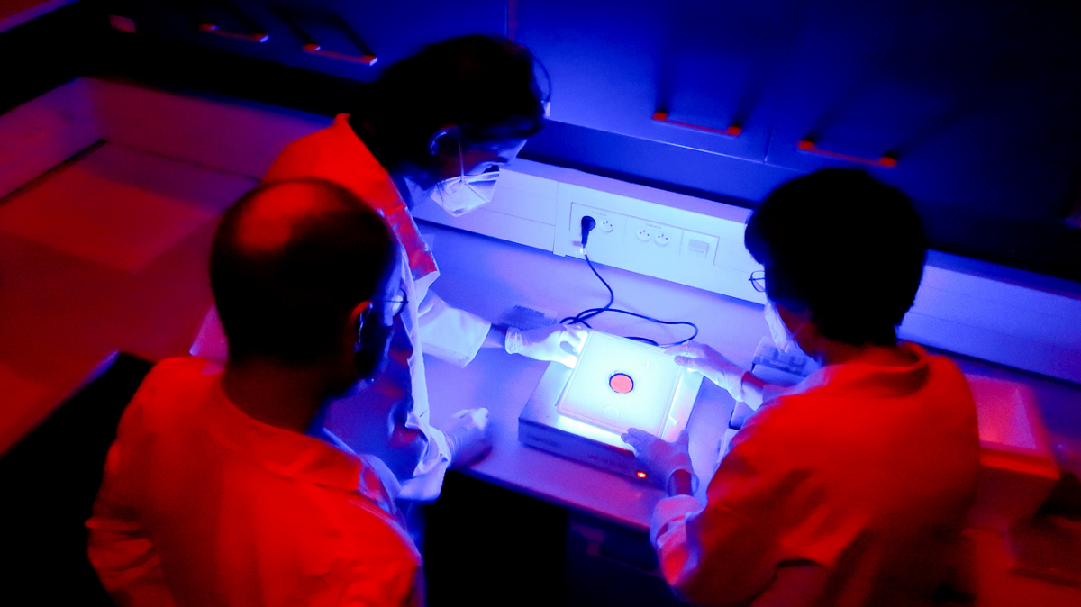 Členové výzkumného týmu při práci v laboratoři.
