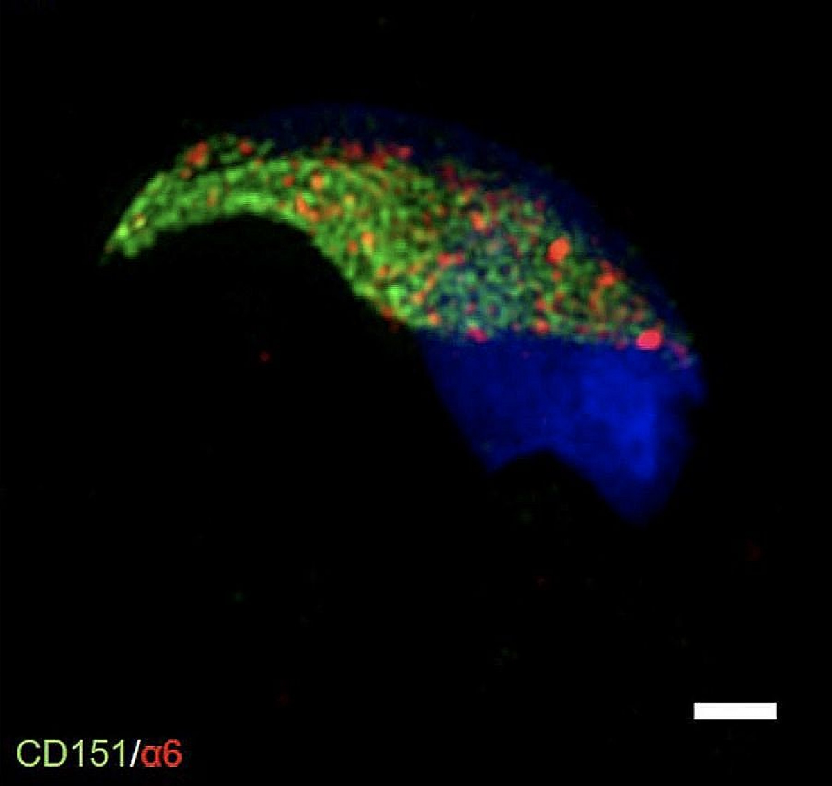 Obrázek - Lokalizace CD151 a integrinové podjednotky α6 v myších epididymálních spermiích a jejich interakce