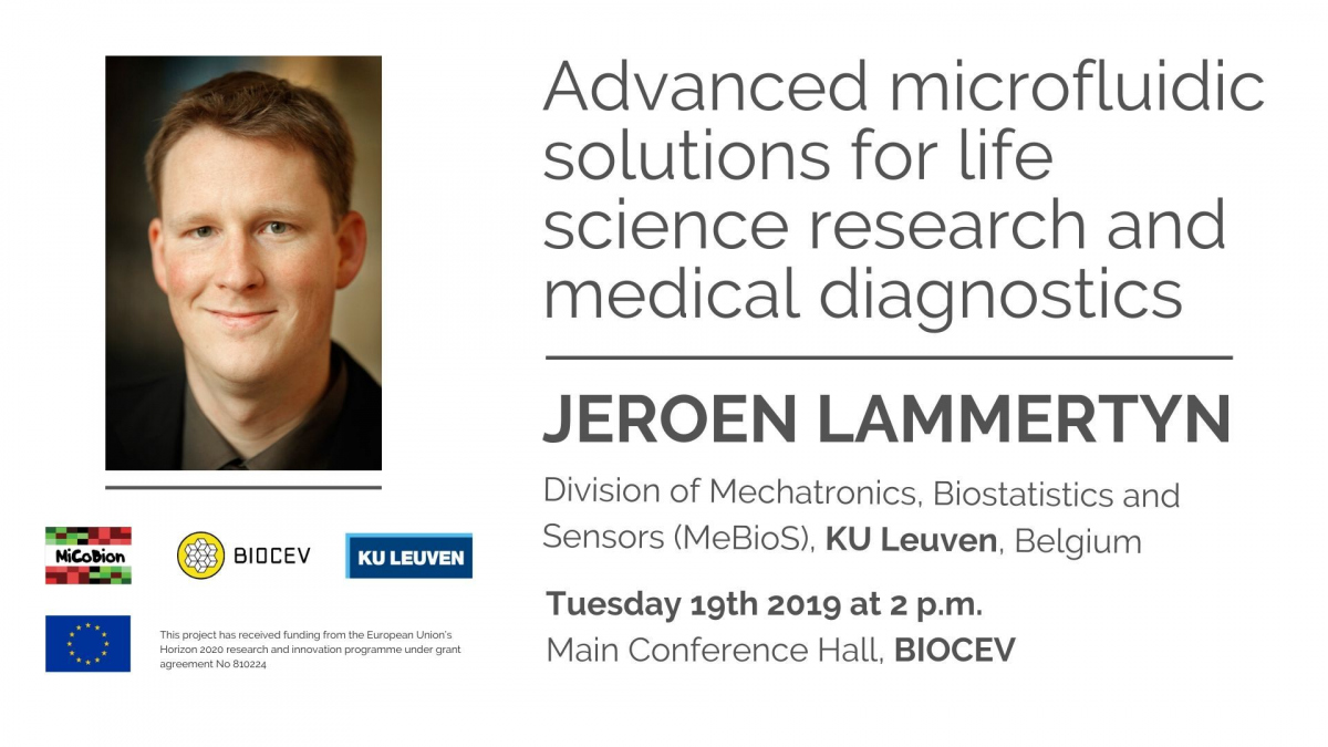 Projekty — 20.11.2019 MICOBION Lecture: Advanced microfluidic solutions for life science research and medical diagnostics Jeroen Lammertyn, Division of Mechatronics, Biostatistics and, Sensors (MeBioS), KU Leuven, Belgium