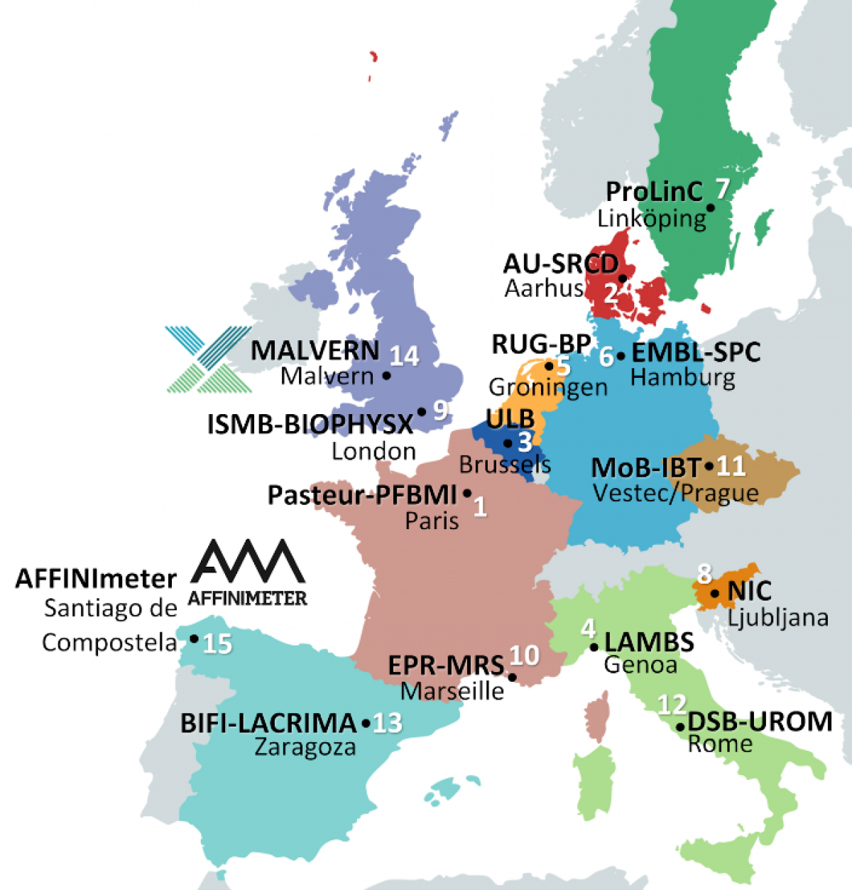 Projekt MOSBRI sdružuje 13 akademických center excelence a dva průmyslové partnery (Malvern Panalytical z Velké Británie a Affinmeter ze Španělska) z 11 různých evropských zemí. Konsorcium koordinuje francouzský Pasteur Institut v Paříži. Českým zástupcem je Biotechnologický ústav Akademie věd ČR, který sídlí v centru BIOCEV ve Vestci u Prahy. https://www.mosbri.eu