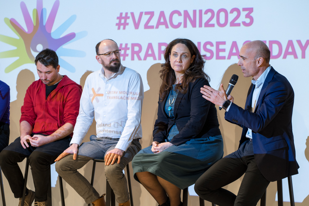 Akci moderoval PD. Dr. rer. nat. habil. Radislav Sedláček, ředitel Českého centra pro fenogenomiku. R. Sedláček, který úvodem oznámil vznik „Aliance pro výzkum a terapii vzácných nemocí“ jako technologicko-znalostní platformy pro výzkum vzácných onemocnění a jejich léčby. Aliance sdružuje přední česká vědecká a medicínská pracoviště zabývající se vzácnými genetickými nemocemi stejně jako pacientské asociace a plánuje úzce spolupracovat se specializovanými firmami. Po úvodním slovu, doc. MUDr. Marián Hajdúch, Ph.D. z Ústavu molekulární a translační medicíny Lékařské fakulty Univerzity Palackého v Olomouci se věnoval vývoji léčiv pro vzácná onemocnění a tzv. „drug repurposing“, což je přístup, kdy se již existující a schválená léčiva používají pro nové terapeutické účely. Prof. MUDr. Milan Macek, DrSc. z 2. lékařské fakulty Univerzity Karlovy představil Centra vysoce specializované péče pro vzácná onemocnění a aktivity v oblasti zvýšení dostupnosti cílené prevence a včasné diagnostiky ve vyloučených lokalitách v ČR.