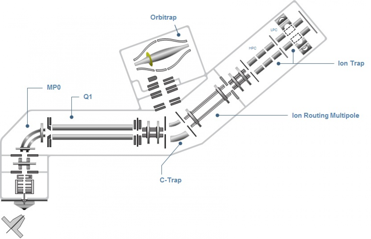 Hmotnostní spektrometr kombinující Quadrupól, Iontovou past a Orbitrap. Quadrupól je používán jako hmotnostní filtr pro výběr prekurzorů, za ním se přístroj větví a ionty mohou cestovat buď do Orbitrapu - velmi přesného a vysokorozlišovacího hmotnostního analyzátotu využívajícího pro určení jejich  hmoty Fourierovu transformaci nebo do kolizní cely, kde mohou být fragmentovány. Odtud vede cesta buď zpět do Orbitrapu a nebo dále do lineární iontové pasti. Ta slouží jako druhý hmotnostní analyzátor v přístroji. Je méně přesná a nízkorozlišovací, poskytuje však větší citlivost a možnost fragmentace iontů. Produkty fragmentace mohou být v pasti izolovány a znovu fragmentovány. Tak je umožněna analýza v MS3 a i vyšších stupních fragmentace.
