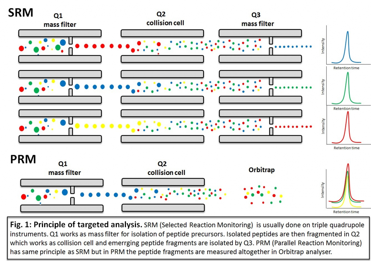 Množství proteinů, které je možno cíleně analyzovat v jednom nástřiku za použití trojitého kvadrupólu, je silně závislé zejména na koncentraci cílových proteinů ve vzorku. Čím nižší je exprese cílových proteinů, tím méně je možné jich analyzovat v jednom nástřiku z důvodu potřeby vyšších plnících časů. Pro tento experiment je také důležitá informace o fragmentačních vlastnostech cílových peptidů. Ta je obvykle získávána z necíleného experimentu, který by měl cílené proteomické analýze předcházet. Pokud nebyl protein zájmu detekován během necíleného experimentu, pak je jeho cílená analýza velice obtížná. V některých případech je možné informace o fragmentaci získat z veřejně přístupných databází.