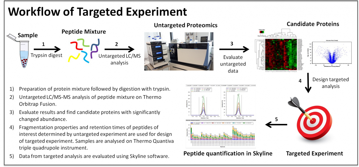 Cílená proteomika je experimet zaměřený na validaci výsledků necíleneného přístupu a měření probíhá na trojitém kvadrupólu v SRM módu (Thermo Quantiva) nebo s použitím MRM metody na Orbitrapu. Tento přístup je alternativou k běžným přístupům pro ověřování výsledků necíleného proteomického experimentu (western blot atd.). Výhodou tohoto přístupu je možnost analyzovat několik proteinů (řádově až desítky) najednou během jednoho nástřiku. Odpadá tak problém se sháněním vhodných protilátek.