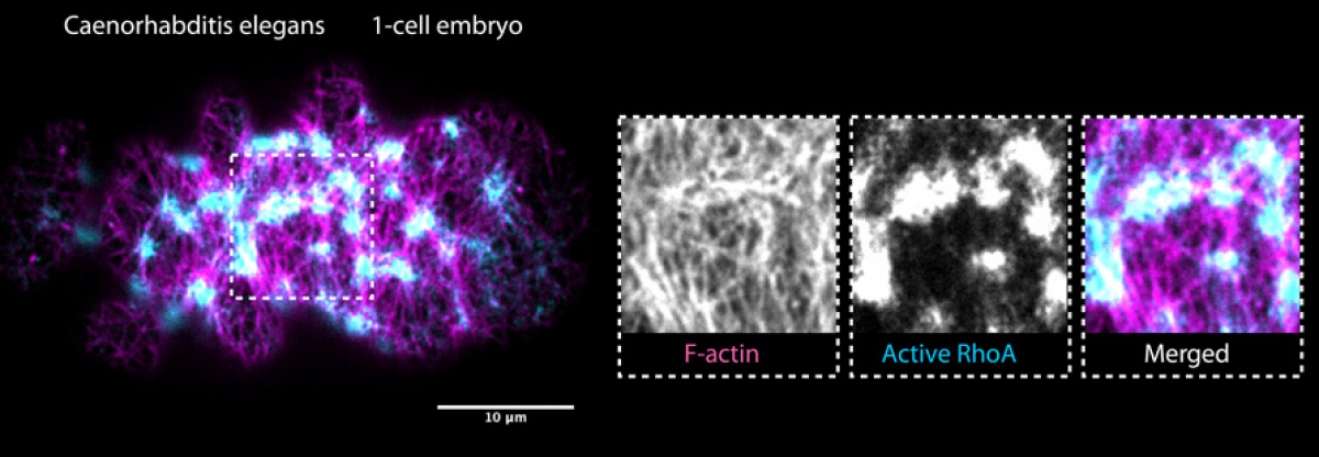 S použitím Caenorhabditis elegans a příbuzných druhů hlístic studujeme, jak molekulární síly generované v aktomyozinové vrstvě vedou k morfogenetickým tvarovým změnám u raných embryí. Za tímto účelem spojujeme možnosti genetiky C. elegans s časosběrným zobrazováním raných embryí (s vysokým rozlišením i superrozlišením), kvantitativní analýzou obrazu a biofyzikálním modelováním.