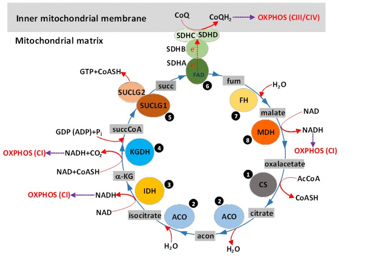 Mutace genu SUCLG2 mohou vést k dysregulaci sukcinát dehydrogenázy (SDH) a následně pak ke změnám metabolismu buňky a vývoji neuroendokrinních tumorů. SUCLG2 je podjednotka enzymu Krebsova cyklu SUCL, který dává vznik sukcinátu, což je substrát pro SDH. Právě SDH se nachází na křižovatce dvou velmi důležitých metabolických drah, Krebsova cyklu a oxidativní fosforylace.