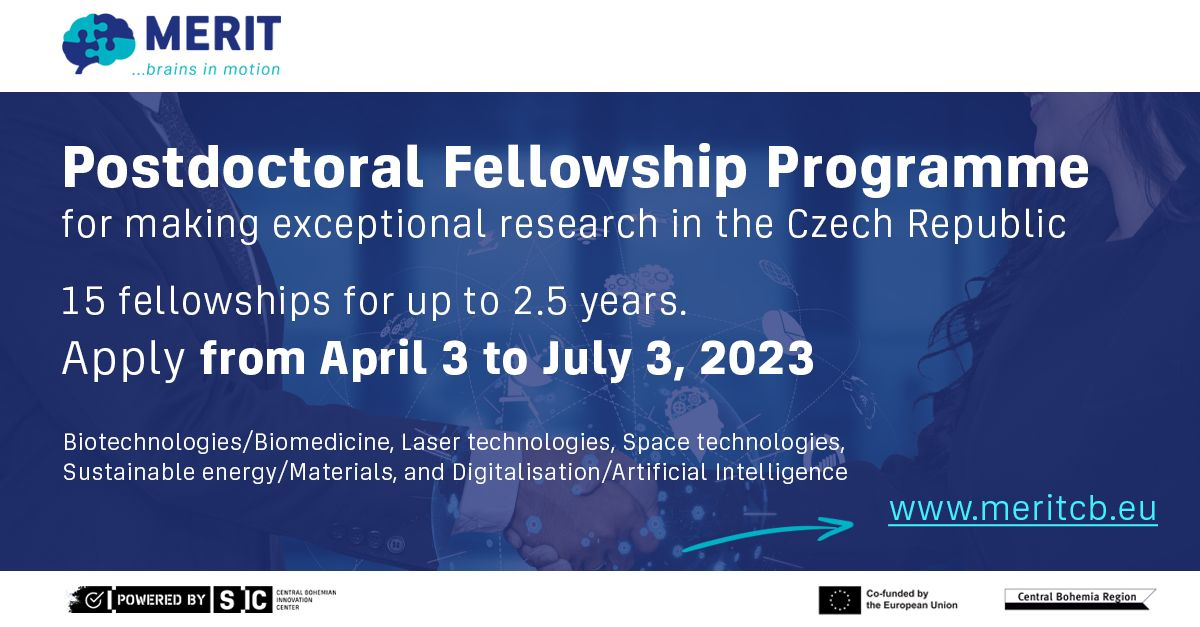 MERIT je regionální MSCA-COFUND program koordinovaný Středočeským inovačním centrem. Aktuálně je otevřena první výzva pro uchazeče, v rámci níž program nabízí až 15 dvou a půl letých pracovních stáží pro kandidáty s titulem PhD v oblastech Biotechnologie/Biomedicína, Laserové technologie, Space, Udržitelná energetika a materiály a Digitalizace/AI. V první výzvě programu MERIT je zapojeno celkem 27 různých vědeckých skupin ze 14 českých výzkumných organizací, které jsou budoucími hostujícími organizacemi pro úspěšné kandidáty.