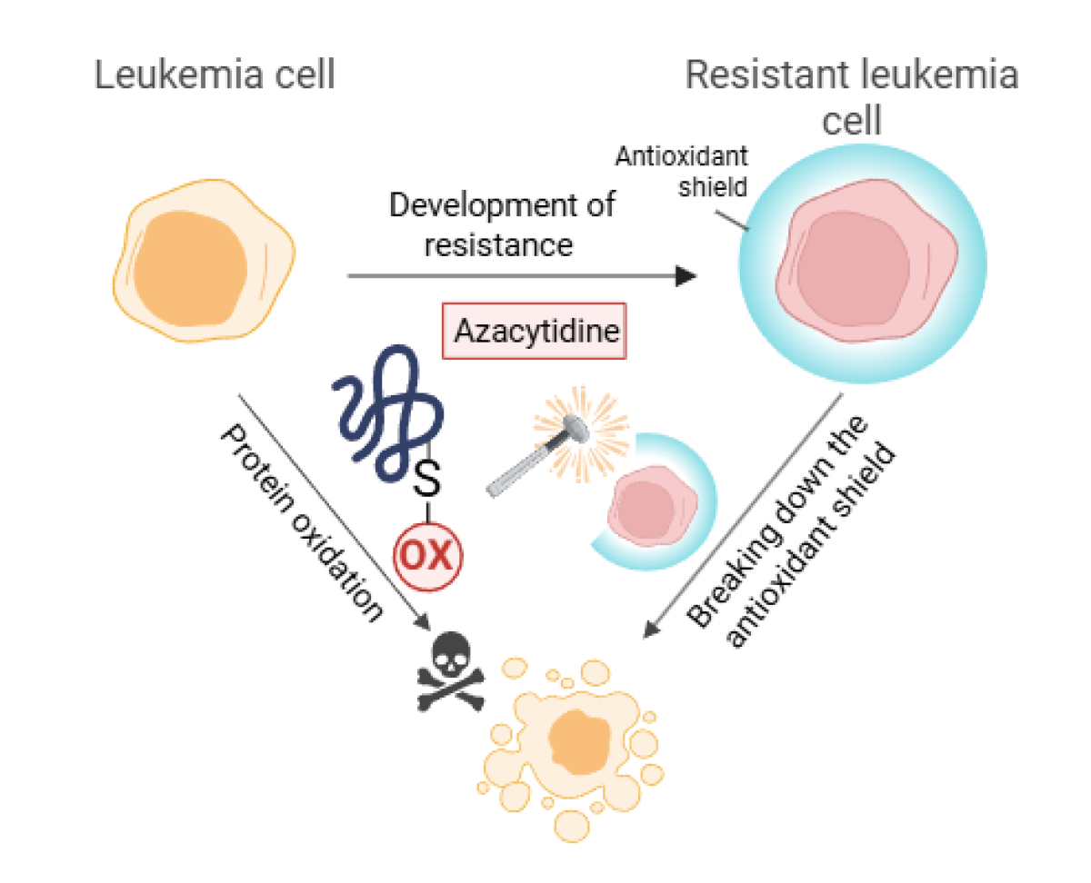 The findings indicate that combining azacitidine with therapies that disrupt antioxidant protection may help prevent or overcome drug resistance in leukemia patients.