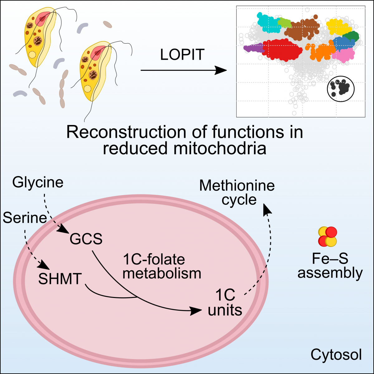From previous studies, it was clear that the mitochondria of Paratrimastix pyriformis contain a protein complex called the Glycine Cleavage System. This complex is found in a number of other normally free-living anaerobic protists. In the mitochondria of model organisms, including humans, this complex breaks down the amino acid glycine to form NADH, and downstream reactions produce methylated folic acid and formic acid, which are subsequently used in the cytosol for various reactions requiring a methyl group. However, it has not yet been understood what the Glycine Cleavage System is used for in reduced mitochondria.